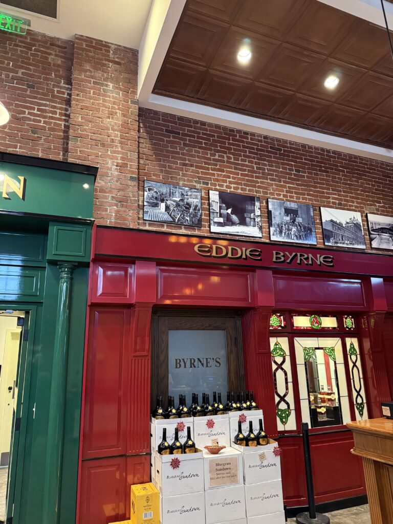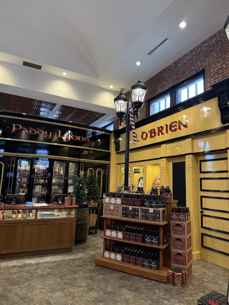 Our visit started in the eye-popping authentically recreated Irish village gift shop — a place where you can snag favorite whiskies, beers, and even try some neat pours or cocktails at the small bar.