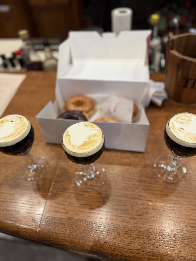 Once we’d polished off a donut and gotten a few sips in, Dave wasted no time in pouring us a flight of three of their American Single Malt whiskies — a 7 year blend, an 11 year, 11 month old Single Barrel Reserve, and their newest limited release, a 16-Year Bottled-in-Bond. All three had my eyebrows raised and funneled into that aforementioned regret at not knowing Town Branch sooner. The 7 year blend was very balanced. While the 11-Year and 16-Year were both show stoppers in their own rights. The 11 year leaned more towards a higher punch of white pepper while the 16 year leaned into deeper, darker sweetness – all three pours bound by this predominant peach ring candy flavor that I still haven’t forgotten.